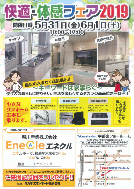 快適・体感フェア2019 タカラスタンダード宇都宮ショールーム(終了しました)