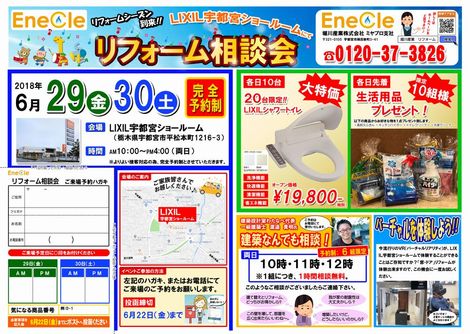 LIXIL宇都宮ショールームにてリフォーム相談会が開催決定となりました!